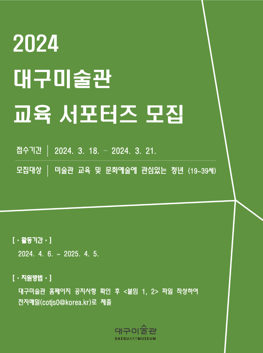 2024 대구미술관 교육 서포터즈(문화자원봉사자) 모집 홍보