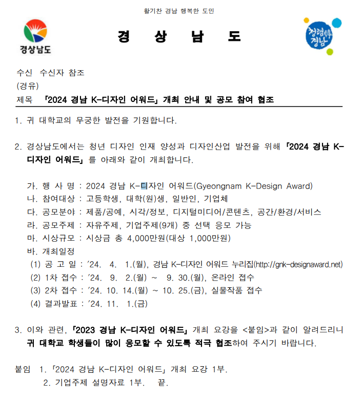 「2024 경남 K-디자인 어워드」개최 안내 및 공모 참여